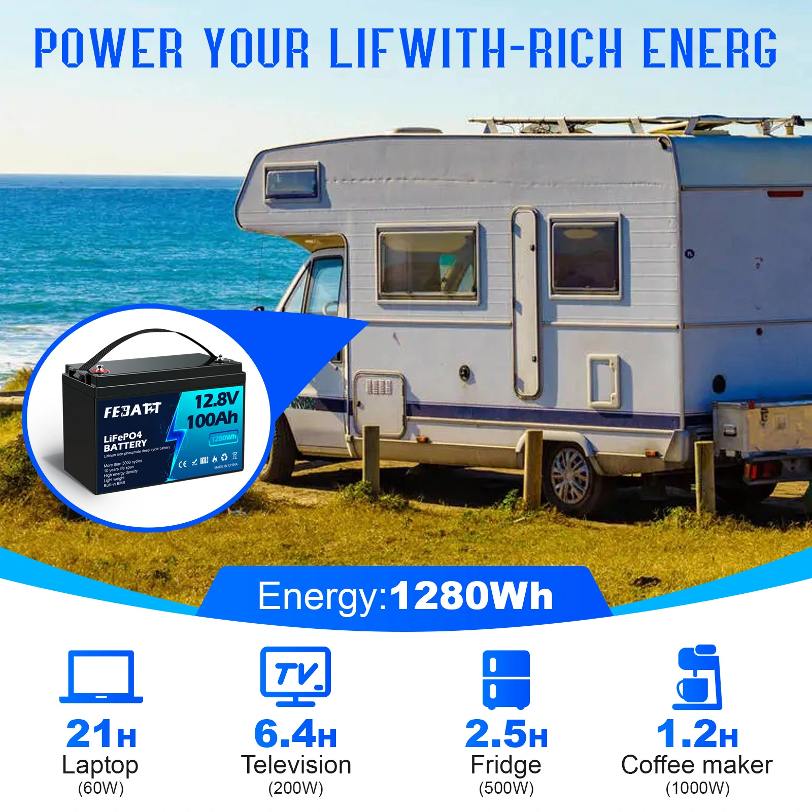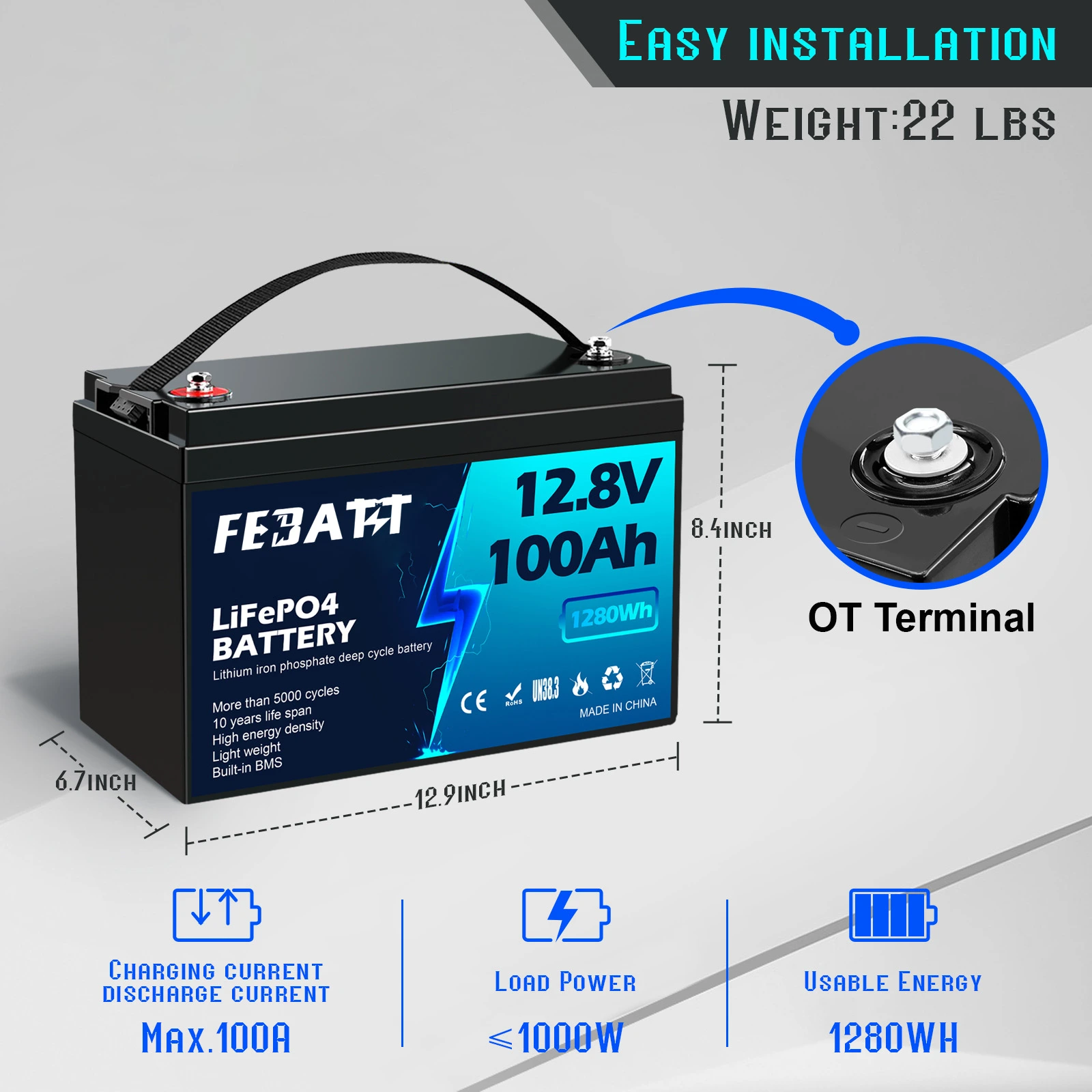 - The 12.8V 100Ah LiFePO4 Battery is designed for versatile use cases including: