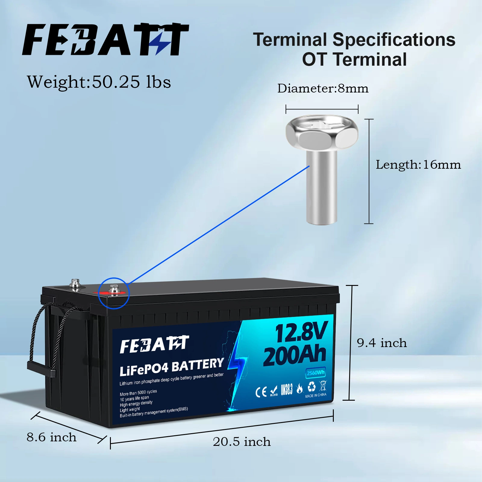 - Premium Cells & Robust BMS: Outfitted with A-grade LiFePO4 cells and a sophisticated Battery Management System (BMS), the LiFePO4 12.8V 200Ah Battery delivers all-around protection against overcharge, over-discharge, short circuit, and high temperatures. Its durable build guarantees reliable performance across diverse environments.