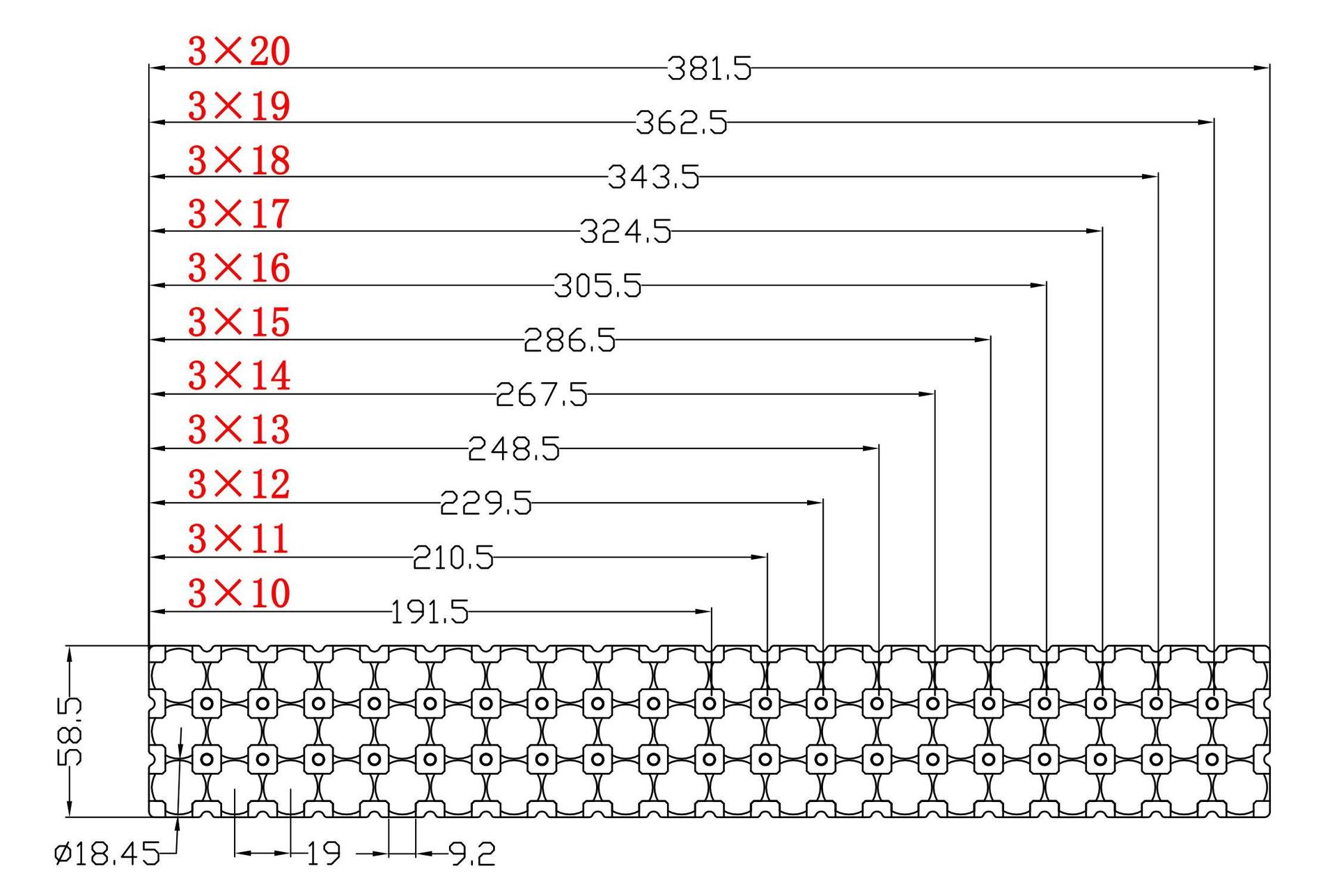 Our 18650 Li-bat Bracket 3×10-3×20 Series Premium FR ABS is made of high-grade flame-retardant FR ABS, covering 3×10 to 3×20 full cell layout series for 18650 lithium battery assembly, ensuring stable cell fixation and reliable fire resistance in industrial use. This 3×10-3×20 Series Premium FR ABS 18650 Li-bat Bracket features precise dimensional machining, fits standard 18650 cells perfectly, with high strength, anti-loosening and anti-deformation performance for long-term stable application.