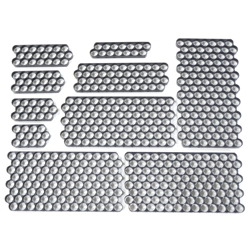 Crafted from durable, lightweight materials, the 18650 honeycomb battery bracket enhances heat dissipation through its hollow honeycomb design. Its modular structure simplifies assembly, enabling neat and efficient battery arrangement. This honeycomb bracket for 18650 batteries combines robust stability, space-saving design, and easy installation—your trusted choice for reliable battery pack building.