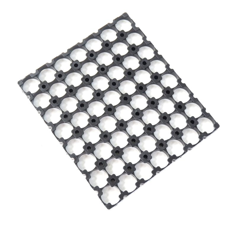 The 18650 Lithium Battery 7×8 In-line Battery Cell Bracket boasts excellent vibration and impact resistance, enabling quick batch assembly and disassembly, ideal for energy storage devices, industrial power modules and DIY 18650 lithium battery pack projects. This 18650 Lithium Battery In-line 7×8 Battery Cell Bracket fully meets the assembly and fixation requirements of 7×8 series 18650 battery modules, enhancing the overall structural stability of the battery pack while simplifying subsequent maintenance operations.