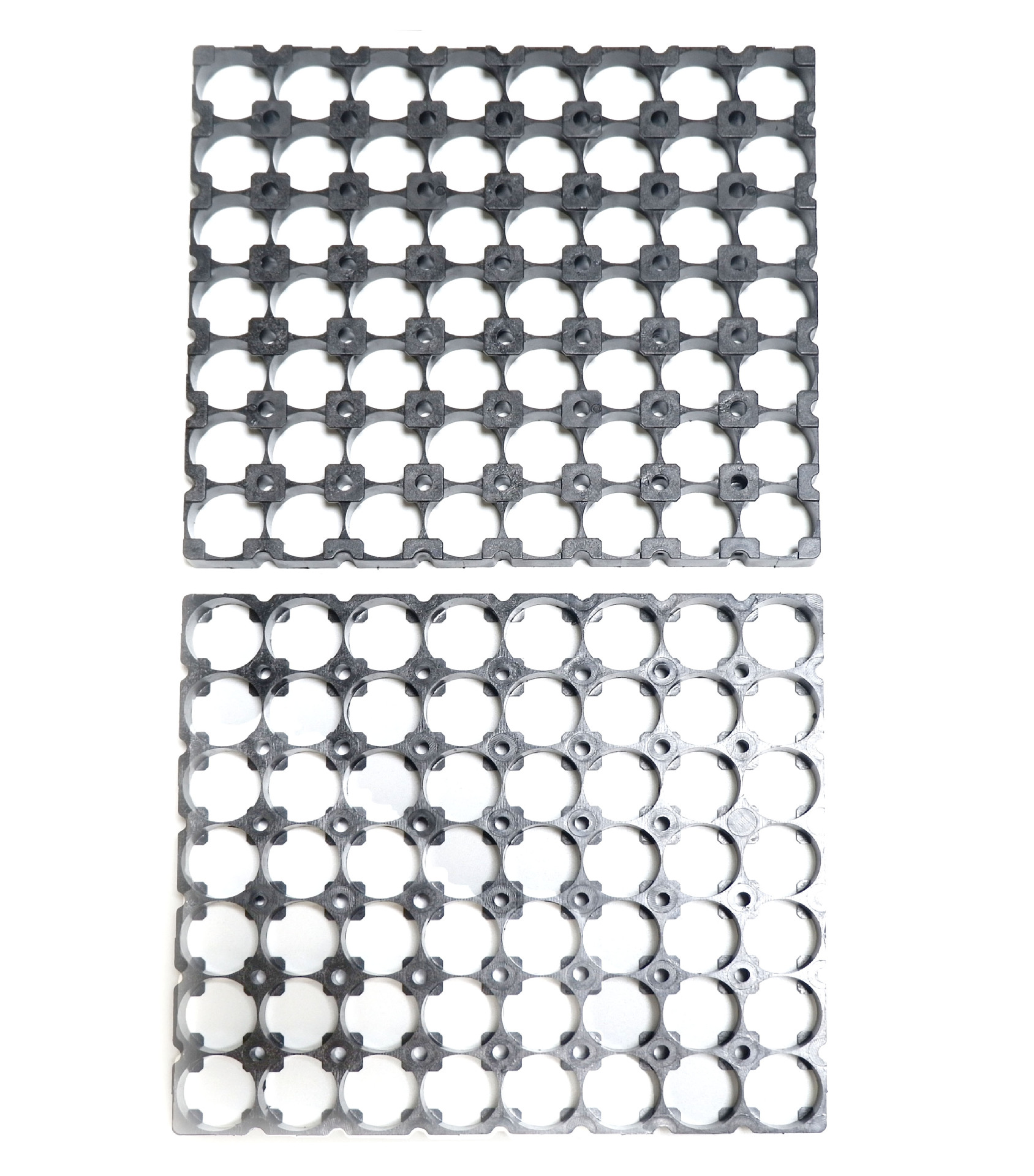 Our 18650 Lithium Battery In-line 7×8 Battery Cell Bracket features a neat linear grid structure, designed exclusively for 7×8 layout assembly of 18650 lithium battery cells, ensuring orderly arrangement and firm fixation of mid-sized battery modules. This In-line 7×8 Battery Cell Bracket for 18650 Lithium Battery is precision-machined to perfectly fit standard 18650 battery cells, with high strength, anti-loosening and anti-deformation performance for long-term stable use.