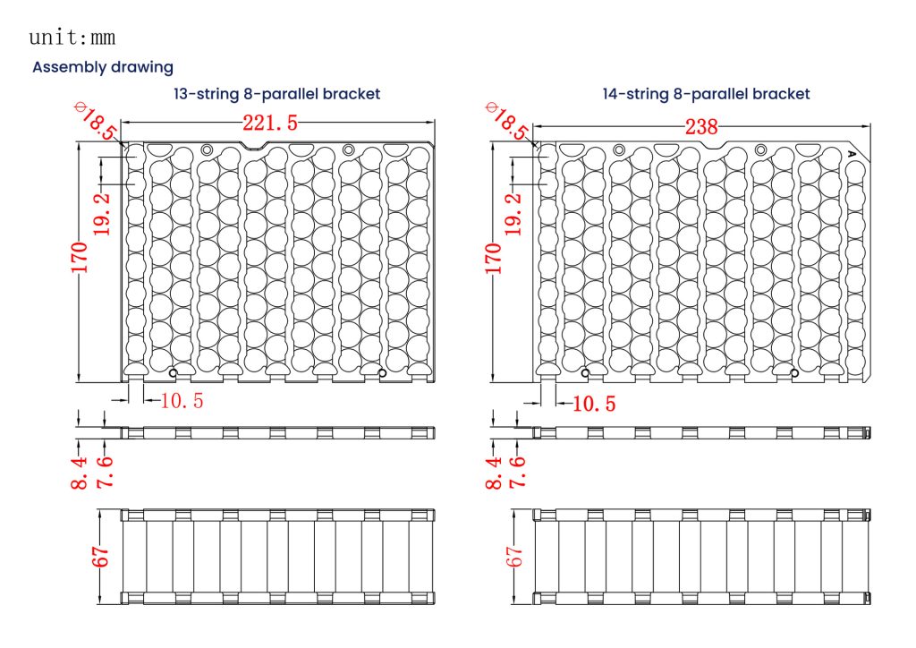 Crafted from durable, wear-resistant materials, the 18650 one-piece molded misalignment bracket offers strong impact resistance and long-lasting stability. Its user-friendly one-piece design simplifies assembly, ensuring neat battery arrangement and optimal heat dissipation. This misalignment bracket for 18650 one-piece molded batteries combines reliable positioning, robust construction, and easy installation—your trusted choice for building safe, efficient battery packs.