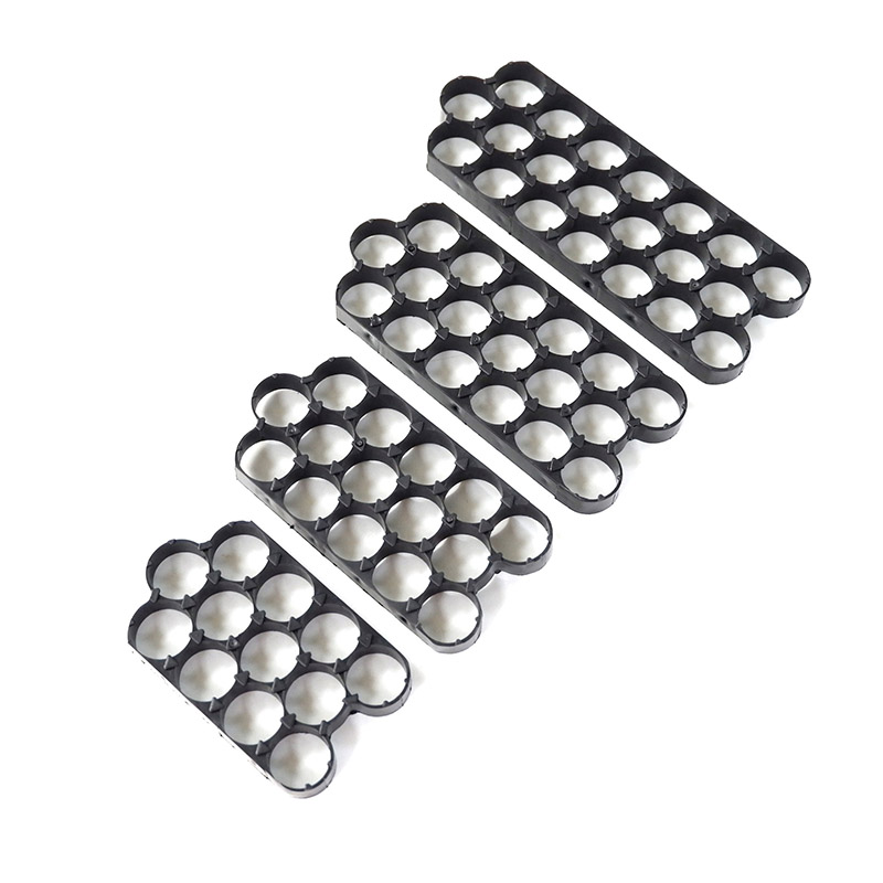 Our 18650 Staggered Li-bat Bracket 3×4-3×9 Premium FR features a staggered honeycomb structure and high-grade Premium FR flame-retardant material, covering 2×5-2×9 cell layouts for 18650 lithium batteries, ensuring compact fixation and reliable fire resistance for small battery modules. This 2×5-2×9 Series Premium FR 18650 Staggered Li-bat Bracket is precision-machined to fit standard 18650 cells, with high strength, anti-loosening and anti-deformation performance for long-term use.