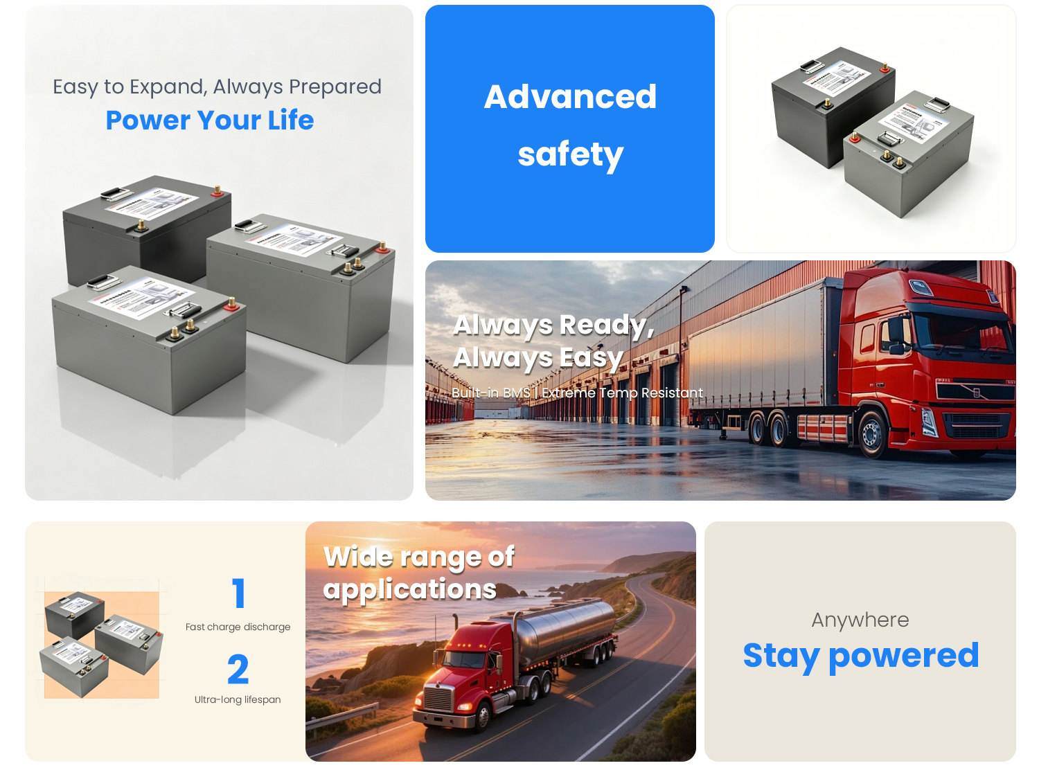 Built for heavy-duty operations that depend on uninterrupted power, our highest-capacity LiFePO4 solution supports sleeper AC, refrigeration, and critical onboard systems during extended rest stops. It helps reduce idling-related fuel waste and downtime while delivering stable, reliable power for demanding long-haul operations.