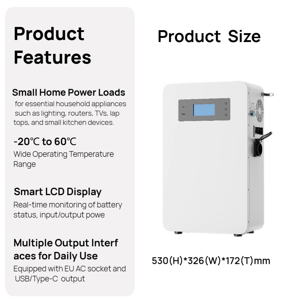 As a versatile energy storage solution, the 25.6V 100Ah LFP Solar Storage Battery seamlessly integrates with balcony solar panel systems to store excess energy for use during peak hours, grid outages, or in off-grid locations. Its compact size (53×32.6×17.2cm) and lightweight design (19kg) make it suitable for portable outdoor applications and space-constrained residential setups. Whether you’re looking to enhance your home solar system, prepare for power outages, or deploy reliable energy solutions in remote locations, this 25.6V 100Ah LFP Solar Storage Battery delivers the efficiency, safety, and scalability needed for modern energy storage.