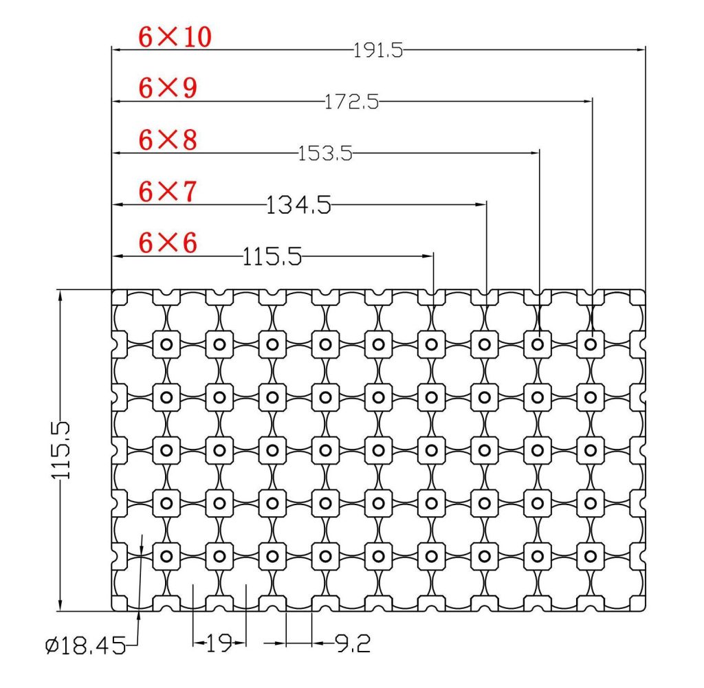 Our 26650/26700 Li-bat Bracket 6×6-6×10, Φ26.7mm, P27.5mm is custom for 26650/26700 lithium battery assembly, with precise Φ26.7mm hole diameter and P27.5mm pitch, covering 6×6-6×10 cell layouts for perfect cell fit and stable medium module fixation. This 6×6-6×10, Φ26.7mm, P27.5mm 26650/26700 Li-bat Bracket is high-strength, anti-loosening and anti-deformation, matching standard 26650/26700 cells for long-term reliable use.