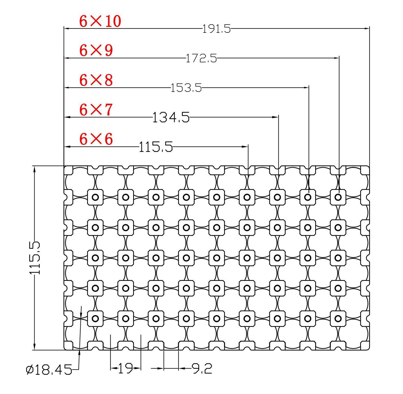 Our 26650/26700 Li-bat Bracket 6×6-6×10, Φ26.7mm, P27.5mm is custom for 26650/26700 lithium battery assembly, with precise Φ26.7mm hole diameter and P27.5mm pitch, covering 6×6-6×10 cell layouts for perfect cell fit and stable medium module fixation. This 6×6-6×10, Φ26.7mm, P27.5mm 26650/26700 Li-bat Bracket is high-strength, anti-loosening and anti-deformation, matching standard 26650/26700 cells for long-term reliable use.