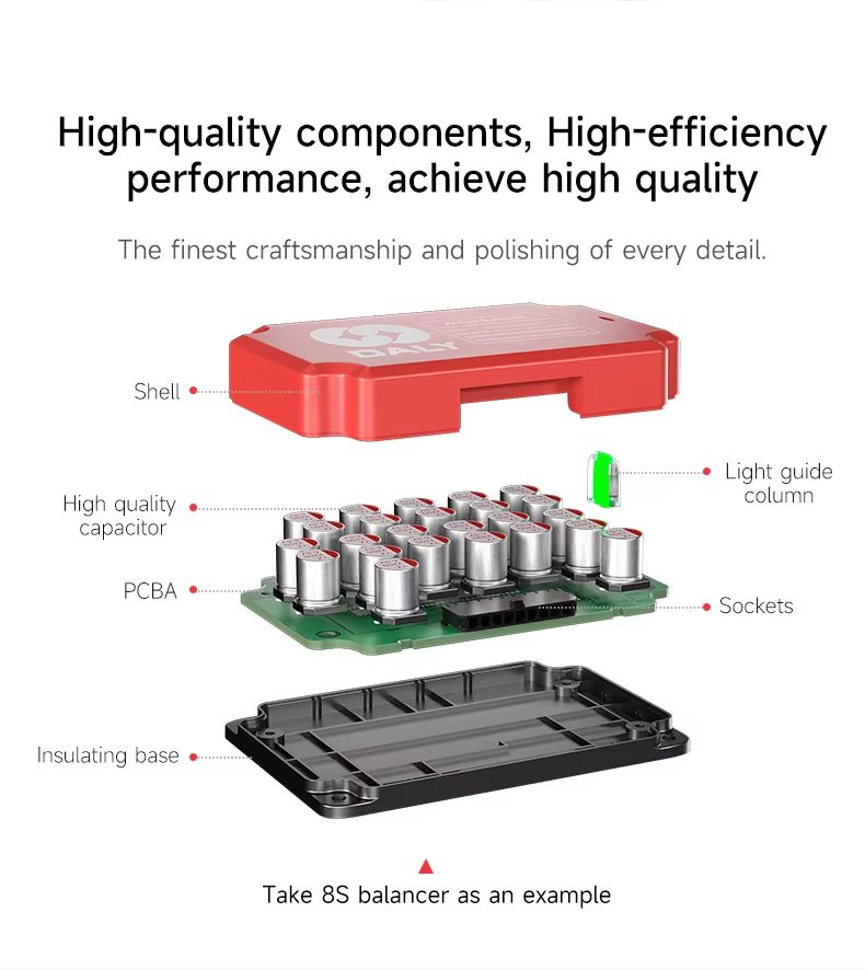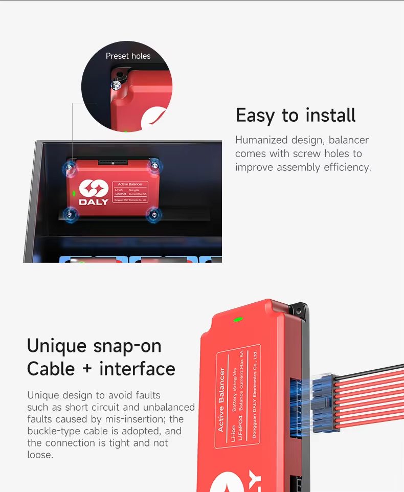 This compact, easy-to-install balancer enhances the stability of your power system, making it ideal for solar energy storage setups, RV/camper battery configurations, off-grid power solutions, and electric vehicle auxiliary battery packs. It’s engineered to protect individual cells from overcharging/over-discharging, while maximizing the overall runtime and longevity of your LFP/Li-ion battery packs.