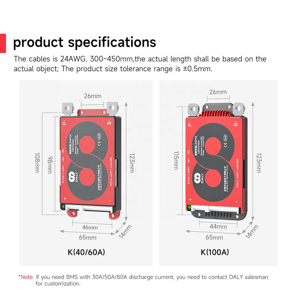 Equipped with multi-layer safety safeguards including overcharge cutoff, over-discharge protection, short-circuit defense, reverse polarity locking and overcurrent limits, this 3-24S 12-72V 40A Smart Battery BMS ensures stable, hazard-free operation for 12V-72V systems. Its 40A current capacity delivers consistent power for daily low-to-mid load applications, while the compact, plug-and-play design simplifies wiring and installation even for users new to battery setups. Built with durable, heat-resistant components and compliant with basic electrical safety standards, this 3-24S 12-72V 40A BMS offers dependable performance, whether you’re powering a portable fridge, a small solar backup system, or a lightweight e-scooter.