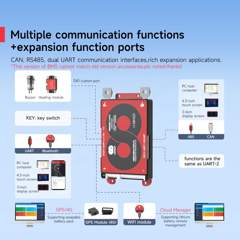 Power up your lithium battery setups with the 3-24S 12-72V 40A Smart Battery BMS—a flexible, high-reliability battery management system engineered for 3S to 24S battery strings and 40A continuous current output. It covers 12V to 72V operating voltages, integrating real-time cell voltage monitoring and automatic balancing technology. This tool not only optimizes charging speed for LiFePO4 and lithium-ion batteries but also mitigates cell degradation, extending overall cycle life by up to 30%. Ideal for small-scale home energy storage, portable outdoor power stations, low-voltage e-bikes, and backup power banks, this 12-72V 40A smart BMS adapts seamlessly to 3S-24S configurations, making it a go-to choice for both DIY battery builds and small commercial low-power projects.
