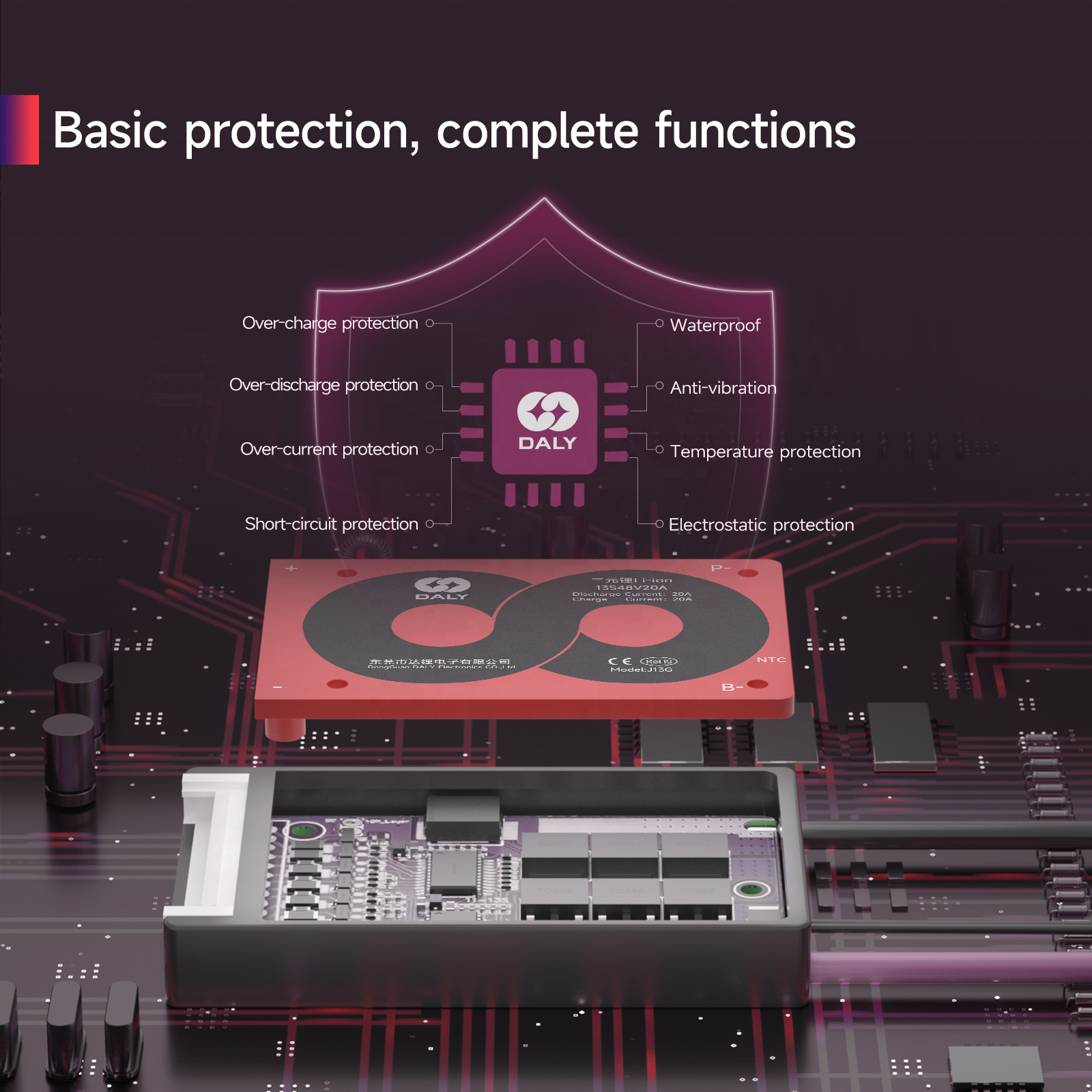 Benefit from the 3-24S 15-60A LFP BMS’s reliable current-carrying capacity and robust protection performance. It effectively prevents overload and short circuit issues even under daily or extreme operating conditions, offering you a cost-effective way to boost the efficiency and safety of your LiFePO₄ battery packs.