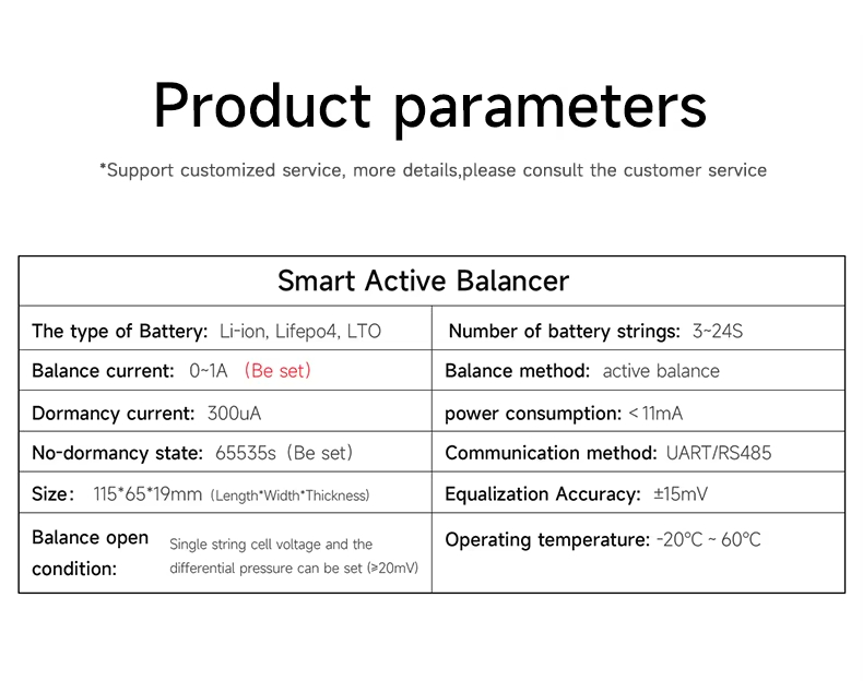 Crafted from ABS, this 1A Active Balancer Smart Bms is compact (1156519mm) and CE/RoHS certified. Equipped with essential accessories and a 3-year warranty, the 4-24S 1A Active Balancer Smart Bms boosts battery consistency—your reliable 4-24S 1A Active Balancer Smart Bms for efficient battery management.