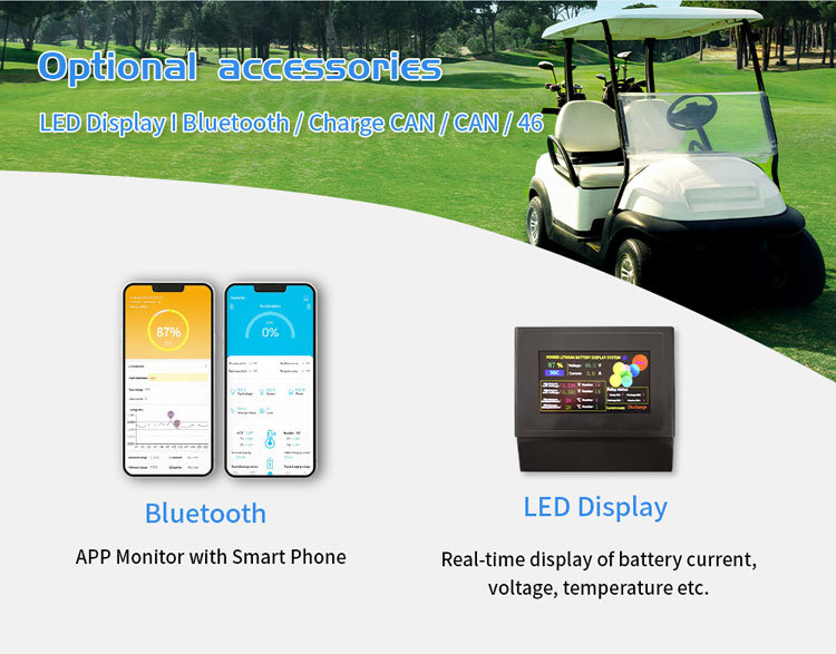 48V100Ah golf cart battery is a large-capacity long-range power battery specially designed for golf carts. This 48V100Ah golf cart battery has stable power, long endurance, long cycle life and smooth discharge performance. 48V100Ah golf cart battery adopts safe and reliable battery cells and protection design, suitable for mainstream golf cart models, ensuring 48V100Ah golf cart battery maintains reliable performance in long-term continuous use. 48V100Ah golf cart battery is easy to install and widely compatible. As a high-quality 48V100Ah golf cart battery, it can effectively improve vehicle range and power performance, making it an ideal choice for golf cart battery replacement, upgrade and long-term use.