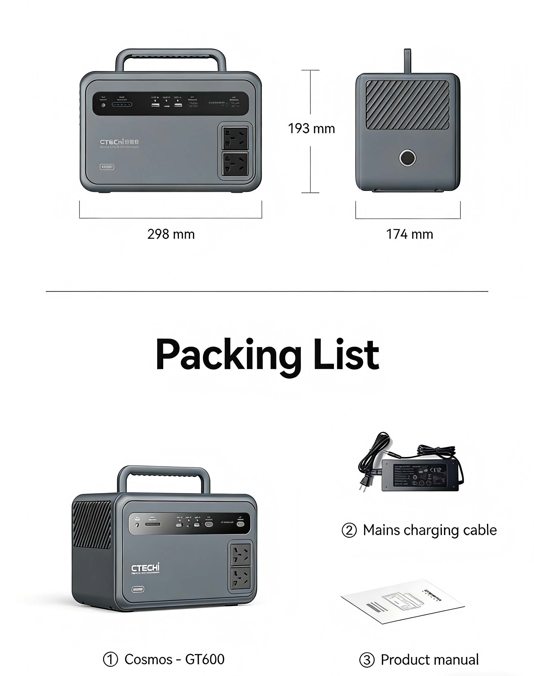 • Stable 600W 220V Output: Delivers consistent power to run small appliances, tools, and digital devices in outdoor or emergency scenarios.