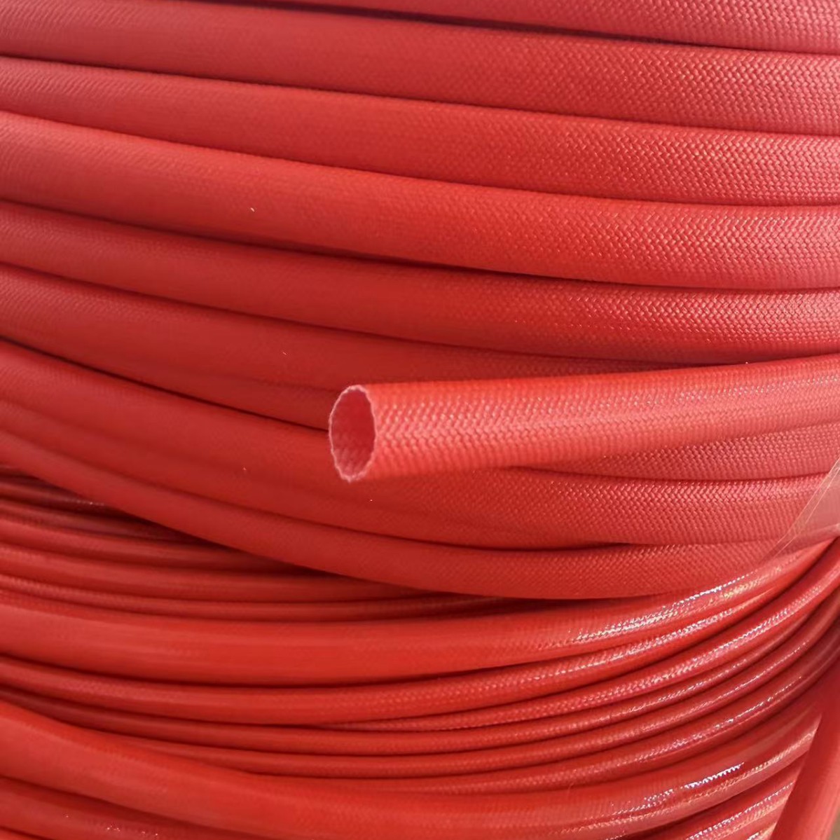 Insulating Silicone Resin Glass Fiber Sleeve is a high-end insulating protective material made of alkali-free glass fiber precision woven and coated with a high-adhesion silicone resin layer. This Silicone Resin Insulated Glass Fiber Sleeve has excellent electrical insulation performance, which can effectively isolate current leakage and provide reliable protection for various electrical equipment and wiring harnesses. The Glass Fiber Silicone Resin Insulating Sleeve features outstanding high-temperature resistance, operating stably in an extreme temperature range from -60℃ to 200℃, with short-term temperature resistance up to 250℃, perfectly meeting the insulation protection needs under high-temperature and high-pressure working conditions.