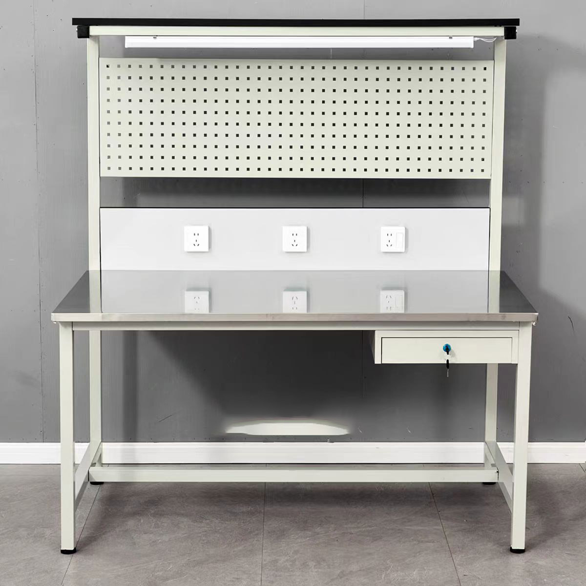 Lighted ESD Workbench is a professional anti-static operating platform with lighting function designed for electronic workshops, SMT production lines, precision component assembly and inspection work. This Lighted ESD Workbench is equipped with high-brightness energy-saving lamps, providing uniform and soft lighting to make the operation clearer, making the Lighted ESD Workbench very suitable for fine electronic processing and maintenance. The Lighted ESD Workbench adopts high-quality ESD anti-static tabletop and reliable grounding structure, effectively preventing static damage and protecting static-sensitive components, ensuring the Lighted ESD Workbench meets industrial anti-static standards. With a sturdy metal frame, wear-resistant tabletop and flexible lighting design, this Lighted ESD Workbench is durable and practical. Whether for assembly, testing, repair or laboratory use, the Lighted ESD Workbench combines anti-static performance and lighting convenience, making it an efficient and reliable Lighted ESD Workbench for modern electronic production.