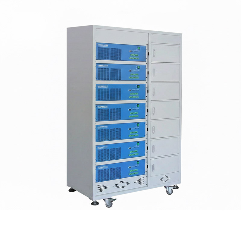 The lithium battery charge/discharge aging cabinet integrates charging, discharging and multi-parameter monitoring to screen defective batteries and test cycle life. This lithium battery charge-discharge aging cabinet supports 0.1C–5C rate adjustment, simulates full working conditions, and applies to electric tools, solar equipment, EVs and energy storage systems.