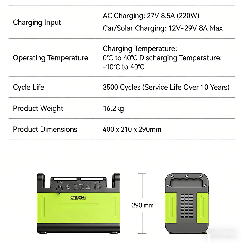 This outdoor portable power battery is built with a durable, long-cycle battery and full BMS protection, guarding against overcharge, overheating and short circuit for safe, reliable use. The compact, handle-equipped design makes this outdoor power battery easy to carry, ideal for road trips, camping and off-grid adventures.