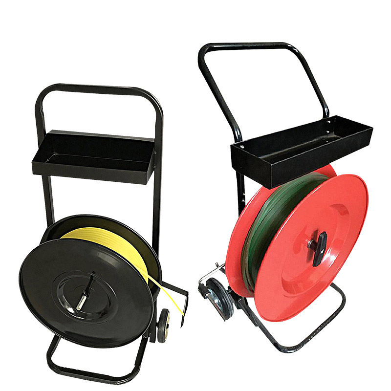 The Plastic steel belt reel cart is a sturdy dedicated trolley for plastic steel belt storage and transport, ideal for industrial warehouses, logistics yards and packaging workshops. This plastic steel belt reel cart has a stable frame that securely holds various-spec belt reels, preventing roll-off and damage during moving and use.